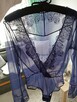 Piękne, przezroczyste na całości koronkowe body w niebanalnym fioletowym kolorze. Super s...owne i komfortowe. ...